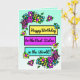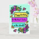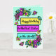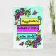 Hand drawn whimsical brightly colored folk art style flower and butterfly purple, yellow and teal Happy Birthday Card for your sister.