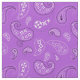 Add a touch of the wild west to your next project with this patterned fabric. It features paisley shapes in black and white in the style of a classic western bandanna set against a bright purple background.