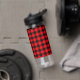Bright Red and Black Buffalo Plaid, Chequered Water Bottle