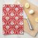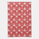 Bright Red and White Damask Pattern. Tea Towel
