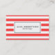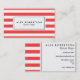 A chic design featuring horizontal white and red stripes with a white box in the centre for your name and profession.