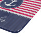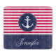 Beautiful cutting board with nautical anchor design, red & blue stripes and custom text.