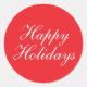 Bright Red Plain Elegant Happy Holidays Message Classic Round Sticker