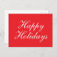 Bright Red Plain Elegant Happy Holidays Message Holiday Postcard