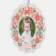 Celebrate the holiday season with this beautifully designed Christmas photo ornament card. This festive card features a circular scalloped edge design with a customisable family photo space at the centre, surrounded by vibrant red poinsettia flowers, green holiday motifs, including holly berries, leaves, and decorative red ribbon bow. Perfect for creating unique and memorable keepsakes, this ornament card is a wonderful way to share the joy of the season with loved ones. Customise a personal greeting on the back of the card. For enquiries about custom design changes by the independant designer please email paula@labellarue.com BEFORE you customise or place an order.