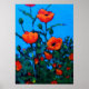 Bright Red Poppies: Blue Sky: Oil Painting Poster