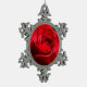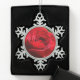 Bright Red Rose Flower Beautiful Floral Snowflake Pewter Christmas Ornament