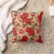 Brilliant red roses and illegible text from a junk journal page create a beautiful, vintage-looking throw pillow that's perfect for any decor.