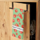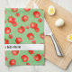 Ms. Monogram's Mediterranean-inspired kitchen towel design features watercolor tomatoes in a fun pattern. The design is set on a light green background and accented with your name. #Tomatoes #Mediterranean #Vegan #93CC8A