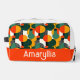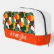 Personalise this bright makeup bag with your name in white on an orange background.