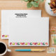 Add a special touch to Christmas cards and other mailings with these custom envelopes. They feature a fun and colourful geometric pattern with rounded square shapes in red, lime green, orange, pink and green. Your name and return address can be printed on the back flap of these envelopes.