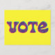 Encourage potential voters to cast their votes with this bright, eye-catching postcard. Retro lettering in a risograph style spell out the one-word slogan on the front of this postcard. The text on the back can be customised with your own message, or delete the text to hand-write your own message on this postcard.