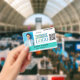Horizontal employee ID badge with a practical template for customising with an employee ID photo, your business logo, a QR code, the department, the employee's name and title, and badge information. Add the name and title in black against a strong robin egg blue shade.