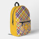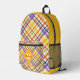 Personalise this colourful plaid school backpack with a name and monogram for a stylish back to school gift. Diagonal plaid with yellow contrast colour. See other sizes and accessory styles in the drop down, as well as other matching items in this collection at KidsUnique on Zazzle.