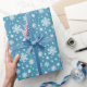 Bright Sky Blue Winter White Snowflake Pattern Wrapping Paper