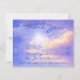 Bright sun peeking through blue and pink clouds. The skyline blends into tranquil water, where your loved one's name and dates reside. The back of the card reads: Thank you for thinking of our family during this difficult time. We deeply appreciate your expression of sympathy.