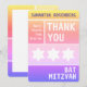 Bright colours. A clean, simple design. Large type. The Star of David... prominently displayed in a row. This modern and unique Bat Mitzvah thank you note features a complementary palette with each section defined by a unique background colour. All of the printed information can be customised with your daughter’s name…just fill in the fields!