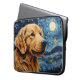 BRIGHT STARRY NIGHT WITH GOLDEN RETRIEVER DOG LAPTOP SLEEVE