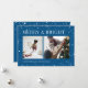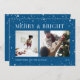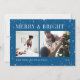 A modern and festive design for your holiday greetings featuring two photos aligned side by side, on a blue background dotted with stars. "Merry and Bright" appears across the top in classic serif lettering, with "Warm Wishes," your family name, and the year along the bottom. A cheerful and colourful design for Christmas 2021.