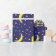 Bright Stars & Yellow Quarter Moon Night Sky Wrapping Paper
