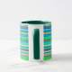 This cheerful mug is decorated with a lively pattern of green, gold, orange, blue, turquoise and white horizontal stripes and is trimmed with green.