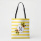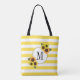 Bright Stripes Yellow Sunflowers Floral Monogram Tote Bag