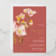 Engagement Party Invitation with pink Buttercups Flowers. Hand drawn flowers on a bright orange and red colourful background. Bright Ornate floral watercolor painting. Abstract nature backdrop with Buttercups Flowers. Vintage elegant flowers, autumn or summer floral design, romantic field. Botanical plot. Botany Engagement Party Invitation. Bright Summer Buttercups Collection.