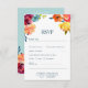 Matching elegant "RSVP" Card on luxury turquoise Background. Text is fully customisable.