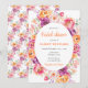 This cute and whimsical watercolor bridal shower invitation features pink, purple and orange flowers with greenery foliage. The text combines handwritten script and sans serif fonts for a stylish and modern look. This is perfect for a spring or summer bridal shower.