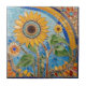 Bright Summery Sunflower Faux Mosaic Sky Blue Tile