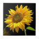Bright Sunflower on Black Background Tile