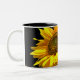Bright Sunflower on Black Background Two-Tone Coffee Mug