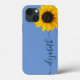 Bright Sunflower Script Stem Name Blue iPhone Case