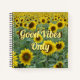 Bright field of sunflowers with retro 'Good Vibes Only' text
