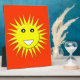 This awesome plaque features a bright smiling yellow sun that is guaranteed to make you smile even on the most miserable days. It is on a red-hot background and has a big white smiley mouth and huge black eyes with white pupils.