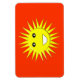 This awesome magnet features a bright smiling yellow sun that is guaranteed to make you smile even on the most miserable days. It is on a red-hot background and has a big white smiley mouth and huge black eyes with white pupils.