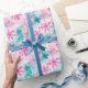 Bright Teal and Pink Snowflake Holiday Wrapping Paper