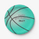 Bright Teal Blue Basketball Happy Birthday Name Paper Plate