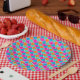 A very chic Paper Plate, with a traditional Islamic pattern in bright pink, orange, turquoise blue and light green, outlined in gold-effect; from the Posh & Painterly 'Islamic' collection, this pattern can be easily adjusted to fit any Paper Plate.