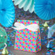 A chic Tent Favour Box, with a traditional Islamic pattern in bright pink, orange, turquoise blue and light green, outlined in white; from the Posh & Painterly 'Islamic' collection, this pattern can be easily adjusted to fit any Favour Box.