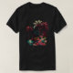 I give wanted to give this a 4 instead of a 5 because these Basic DARK T0shirts run unexpectedly SLIM or Narrow. Which is great if you do not have a potbelly, but I have a paunch. It isn't the shirt's fault that I've got a beer belly. The design and shirt itself is a quality cotton shirt. The color is more of a deep purple, but still a very pretty color. The Basic DARK T-shirts run a bit SLIMMER than the Basic Ts. The neck is a fraction narrower (or seems to be narrower) also. I'm a paunchy middle-aged woman and my neck is 12 inches (31cm) thick and the neckline fell about the same as in the photo of the man, and I had the desire to tug it a bit. So if you're a thick necked man or like loose shirts, be aware these are slimmer shirts. Once I get rid of my lockdown paunch it'll look great. The shirt washed well in cold water with no apparent bleeding. We don't have a dryer, so it hung dry. Did not shrink. Love the colors and the design. The design looks smaller on my shirt than it does on the model on-line. But still, it looks good on the shirt. The printing looks as it does on the model, just the size seems fractionally smaller. Washed garment in cold water, hung dry and design appeared unaffected.