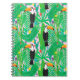 Bright tropical seamless hand drawn pattern with toucans and cactus and palm leaves