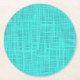 Bright Turquoise Faux Jute Textile Weave Pattern Round Paper Coaster