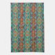 Bright Turquoise Teal Aqua Blue Orange Tribal Art Tea Towel