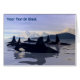 A pod of killer whales head out to sea off the coast of Alaska. Add your own text.