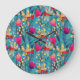 Bright Watercolor: Floral Seamless Design. Large Clock