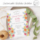Celebrate a milestone birthday in style with this beautifully designed floral birthday invitation featuring bright watercolor wildflowers in cheerful shades of coral, yellow, blue, and green. With a clean white background and a vertical format, this customisable invite adds a fresh, modern twist to your party stationery. Personalise it with the birthday guest of honour’s name, age, event details, and RSVP info. It’s a perfect match to the coordinating floral birthday party collection — great for garden parties, brunches, or any elegant birthday gathering with a vibrant, feminine flair.