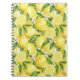 The cover features a dense, repeating watercolor pattern of rich yellow lemons, crisp green leaves, and delicate white blossoms. This vibrant and refreshing print instantly adds a stylish, cheerful touch to your desk or bag.