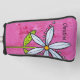 This custom golf club cover for your putters is a vibrant pink with a bright whimsical white daisy flower on a stem with green leaves and dotted accents. Customise your name or text with the template.
