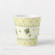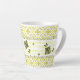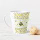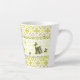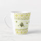 Bright yellow coffee tea mug with accordions, butterflies and musical patterns.